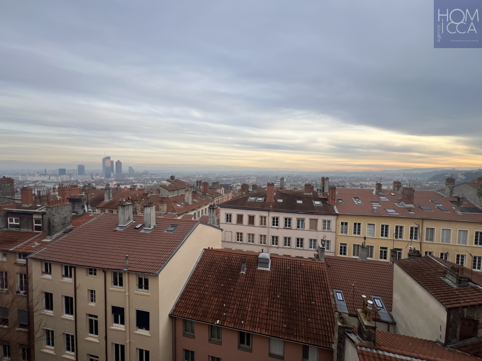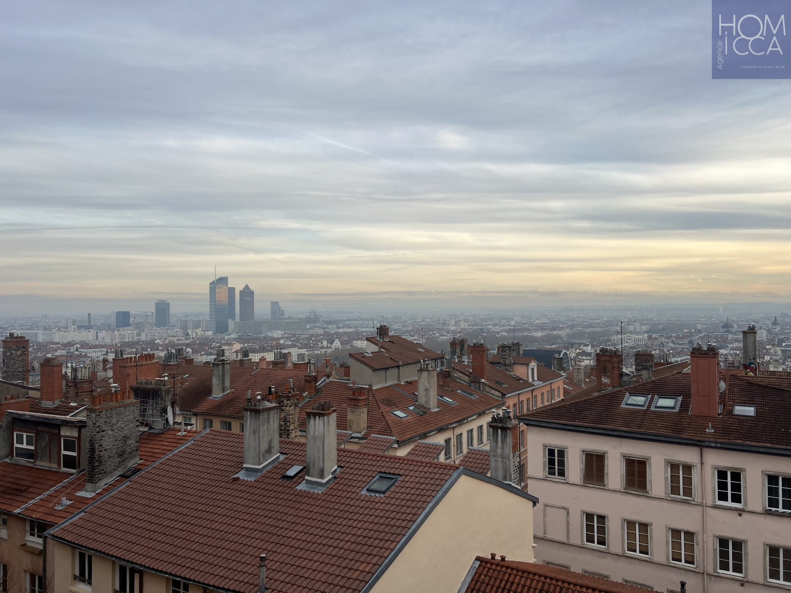 BEL APPARTEMENT 4 PIECES de 90 m² entièrement meublé au 5 ème et dernier étage avec ascenseur. L'appartement est lumineux et bénéficie d'une vue sur Lyon exceptionnelle. Il se compose d'un grand séjour avec mezzanine, d'une cuisine ouverte meublée et équipée, d'une chambre avec placard, d'une salle de bain, d'un WC. A l'étage supérieur, on trouve 2 chambres et un espace bureau ouvert sur le salon . Attention les plafonds à l'étage sont à 1m65 environ