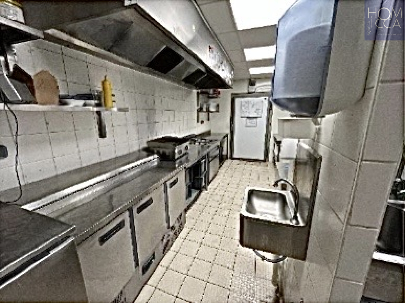 La surface comprend une entrée/accueil de 21m2, une belle salle de restauration de 71m2, une cuisine avec chambre froide de 20m2, des vestiaires et des wc.