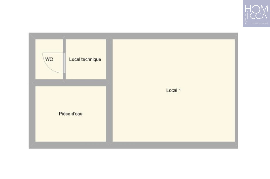 La surface comprend un local principal de 35m2, une pièce d'eau et wc de 7m2, et un local technique de 2m2.