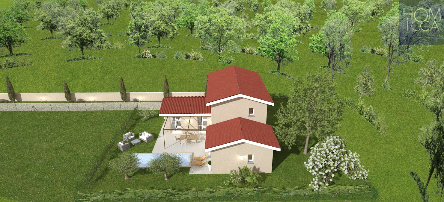 ** projections visuelles proposées par notre Partenaire "Les Maisons Elytis Lyon-Ouest" constructeur régional de maisons individuelles. Projet modifiable. Rendez-vous organisé sur demande.