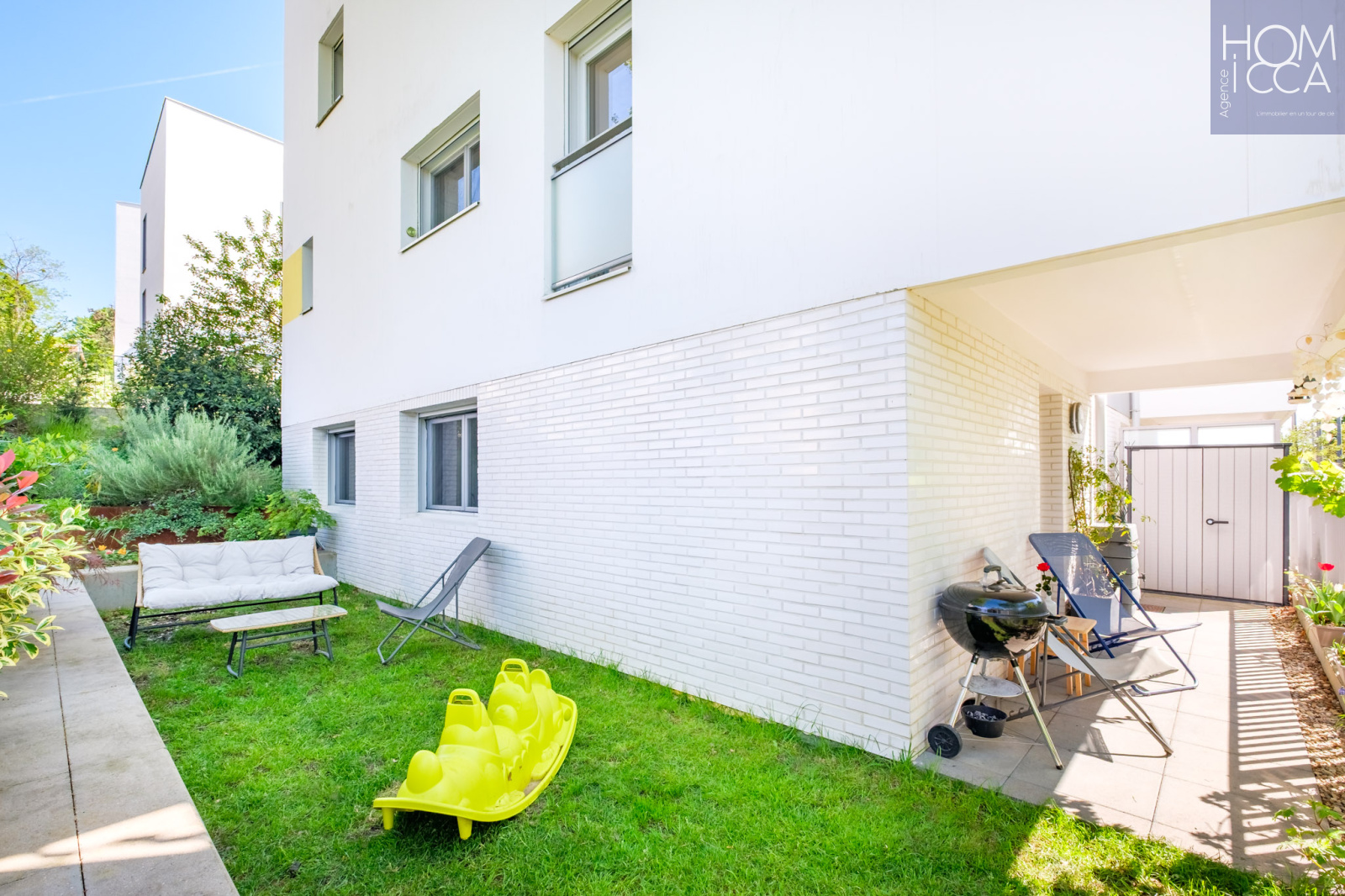 Profitez d'environ 50 m² d´extérieur privatif, avec un côté terrasse abritée et un côté jardin végétalisé et aménagé pour profiter pleinement des beaux jours !