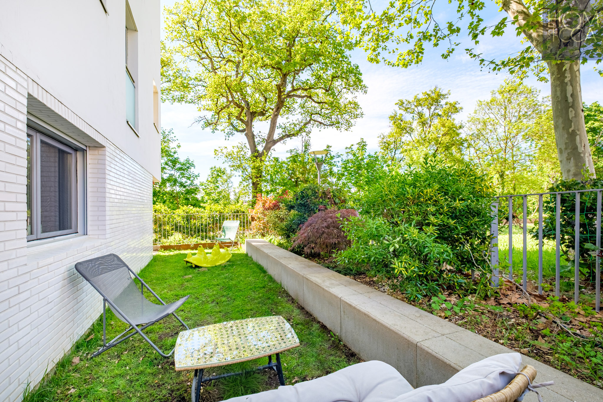 AU NIVEAU INFERIEUR EN REZ-DE-JARDIN UNE TERRASSE COUVERTE ET SON JOLI JARDIN PRIVATIF DE 50 M² ENVIRON .