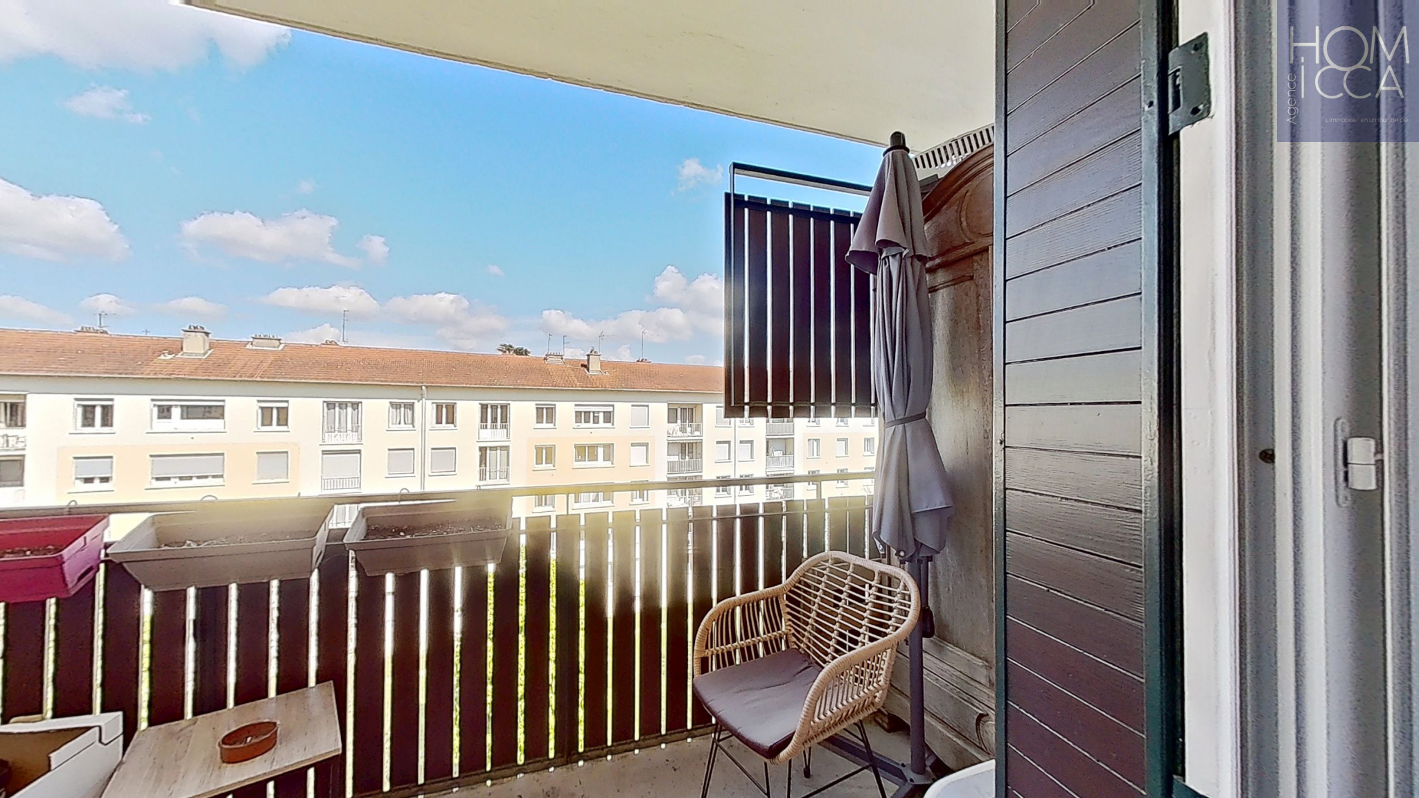 Dans une petite résidence fermée sécurisée par un portail électrique, au 4ème et dernier étage sans ascenseur, il se compose d'une entrée avec rangements, d'un salon-séjour double lumineux avec ses deux baies vitrées à l'OUEST donnant sur un balcon de 7 m² environ avec vue dégagée sur les Monts du Lyonnais, d'une cuisine semi-équipée séparée avec un balcon-terrasse de 6m² environ à l'EST, et d'un coin nuit séparé avec deux chambres à l'est, un placard de rangement dans le couloir, une salle de bains avec baignoire et fenêtre, de toilettes séparées avec fenêtre et d'un grand placard de rangement dans le couloir.